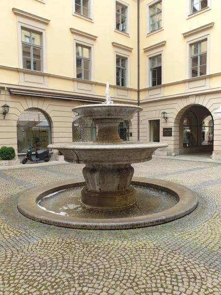 schöne kleine Schalenbrunnen befindet sich im Innenhof der Brienner