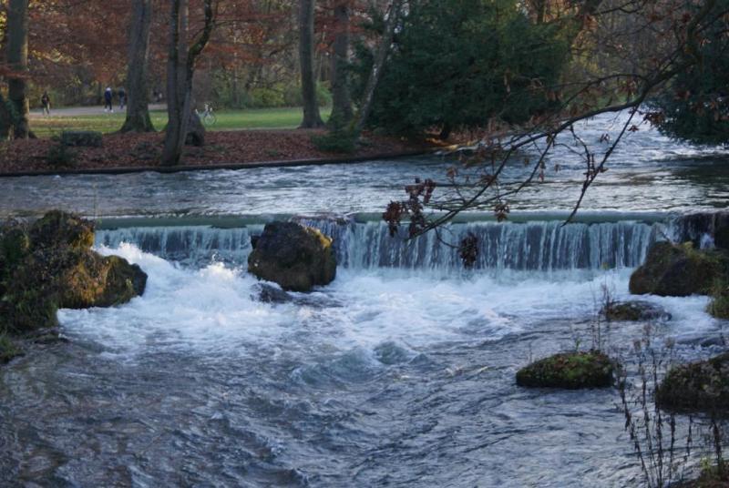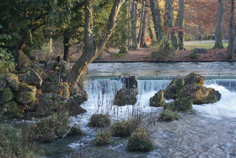 wunderschöne Wasserfall befindet sich im englischen Garten im Stadtbezirk
