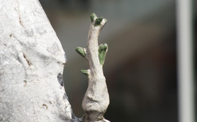 des aus Majolika angefertigten Baumes und der Eule, die auf ihm sitzt