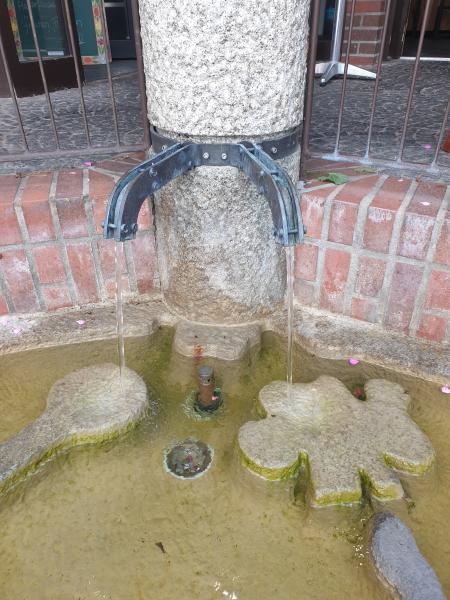 von Manfred Mayerle und Andreas Sobeck entworfen und am 22.10.1977 eingeweiht. Ausführung des terrassenförmig angelegten Brunnens und der Säule in Flossenbürger Granit durch den Steinmetzbetrieb Martin Feicht, München. Hier handelt es sich um einen privaten Brunnen. |