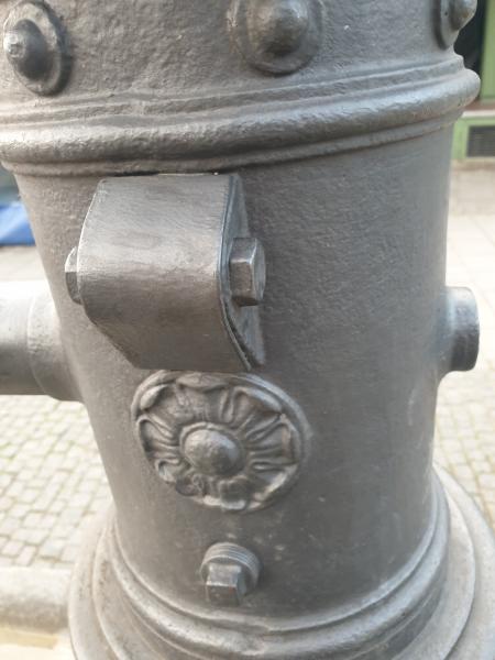 Flachstahl ausgetauscht. Diese Beschriftung ist daher leider verloren. Bei diesem Brunnen handelt es sich um einen - Trinkwasser führenden - städtischen Brunnen. |