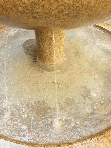 gestaltet. Das Wasser entspringt der oberen Schale und fließt über