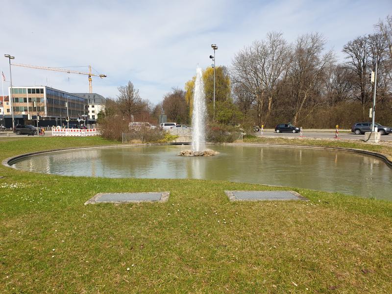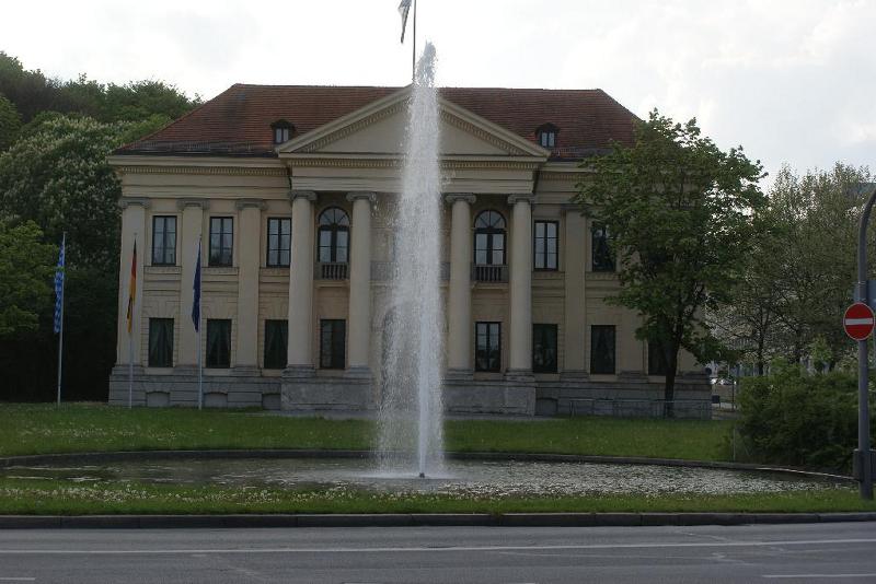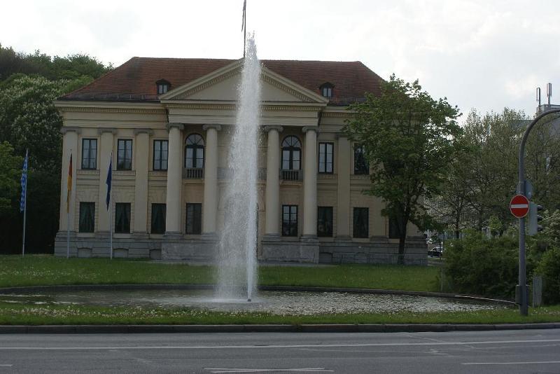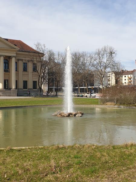 etwa 10 Meter hohe Fontäne kann man vor dem Prinz Carl Palais im