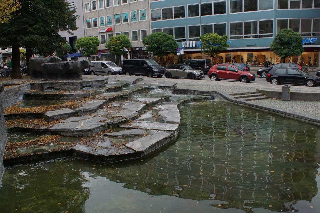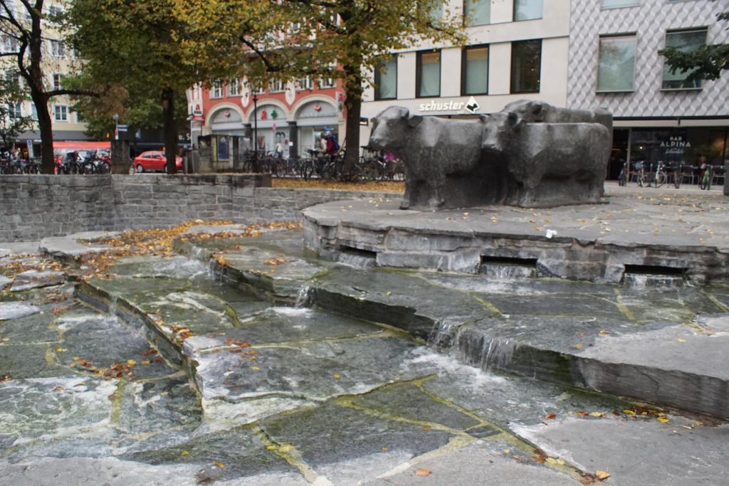 Rindermarktbrunnen ist eine moderne Brunnenanlage in der historischen