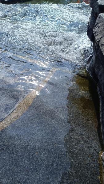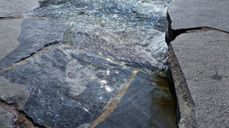natürlichen Wasserlache. Oberhalb der Treppenstufen wird der Brunnen