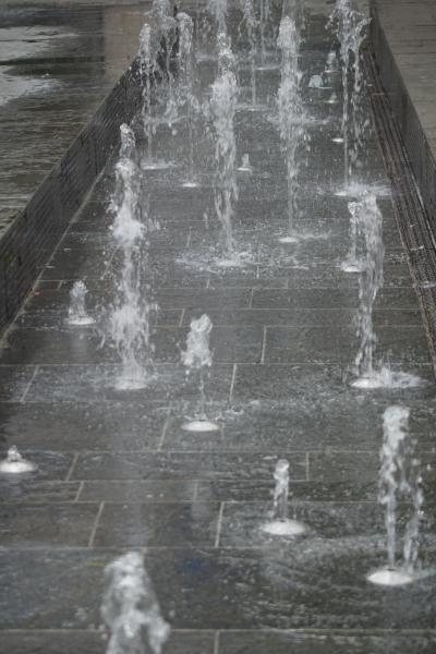 langgestreckte Fontänenbrunnen wurde im Zuge der Neugestaltung des