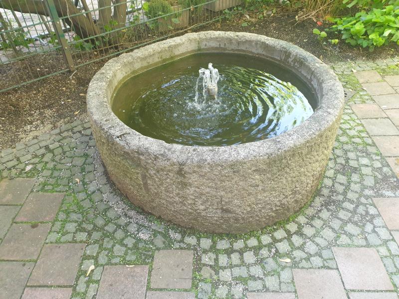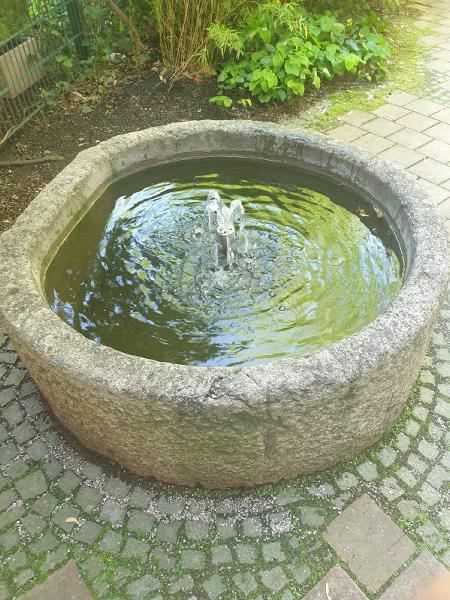 kleine, steinerne Rundbrunnen befindet sich in einem Hof in der Adalbertstraße