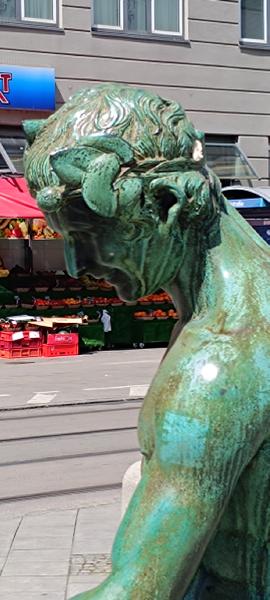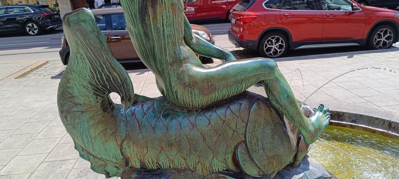 aufgestellt. Naja, wie ein Delphin sieht der Fisch, auf dem die Figur