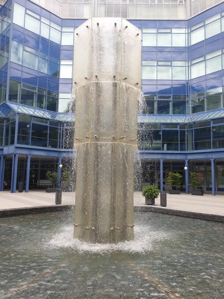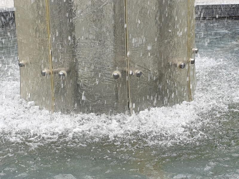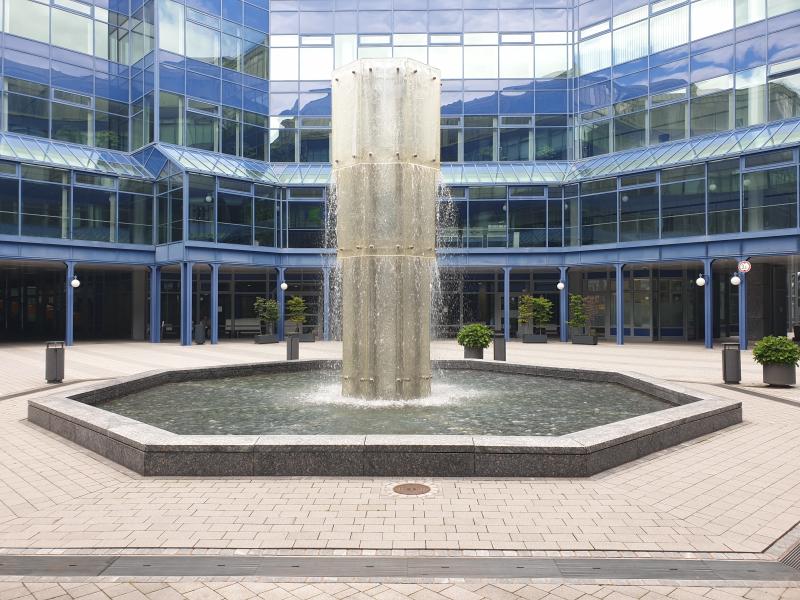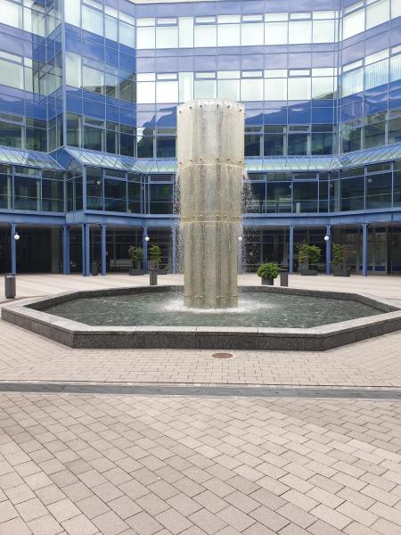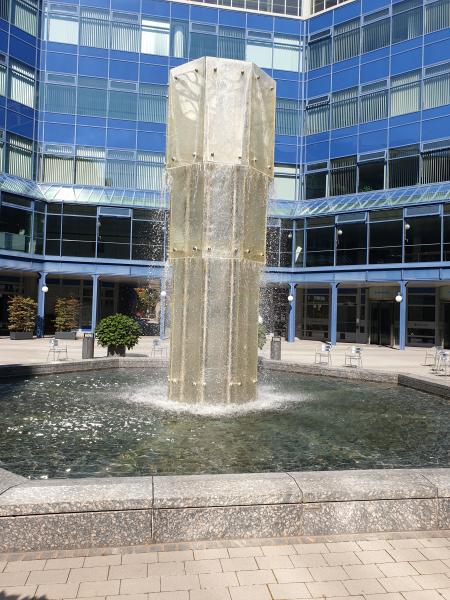 wunderschön plätschernde Brunnen ("Glasbrunnen") befindet
