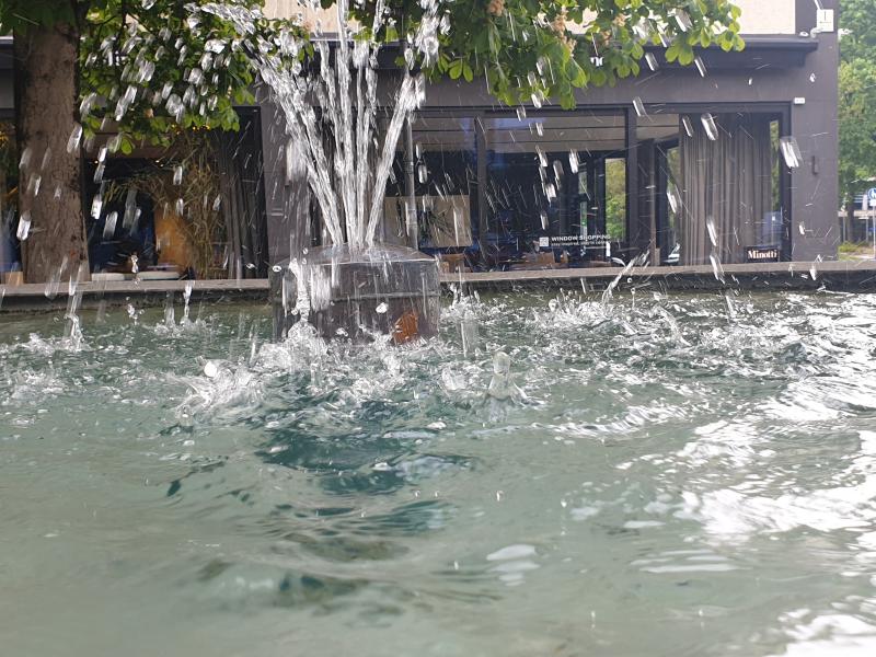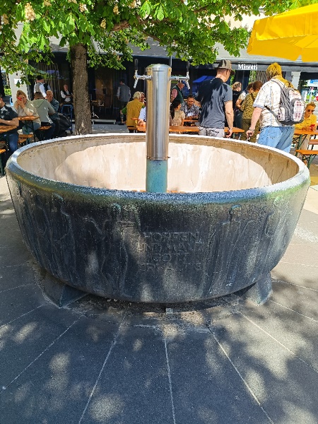 Brunnen, als Punkt 15 Uhr das kühle Nass begann, aus den Zapfhähnen