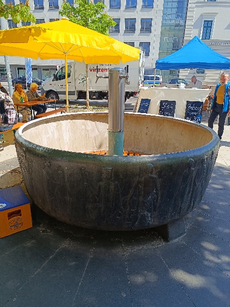ausgegeben, viele Leute hatten aber ihre eigenen Krüge dabei. Vom