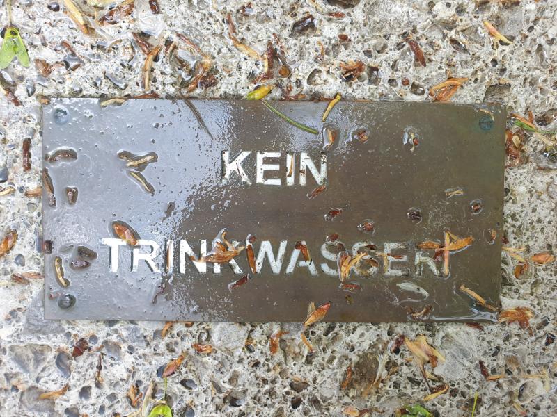 Betonbecken ist mit Isarkieseln ausgelegt, eingefasst ist die Anlage mit