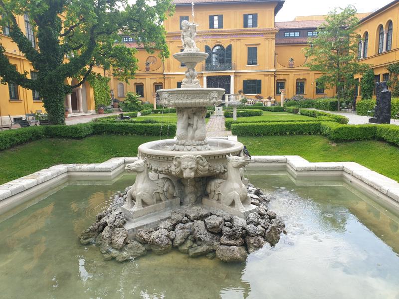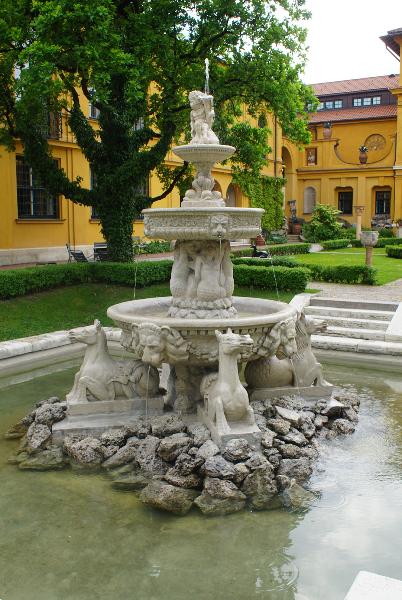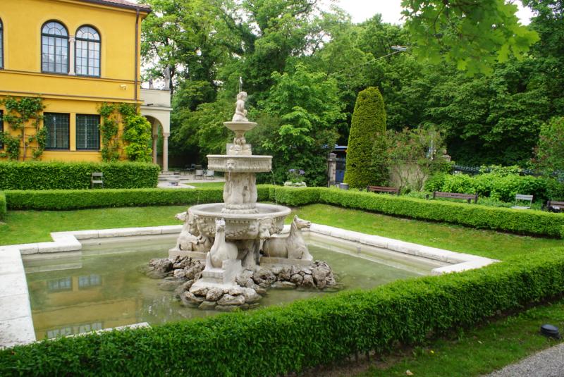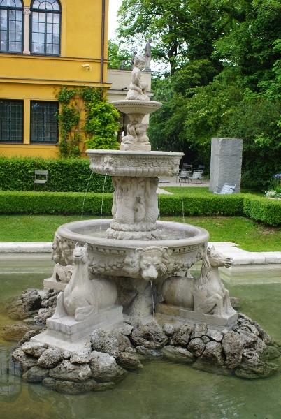 prächtige Schalenbrunnen ist einer von drei Brunnen im Hof des Lenbachpalais,