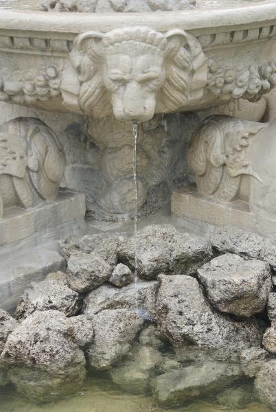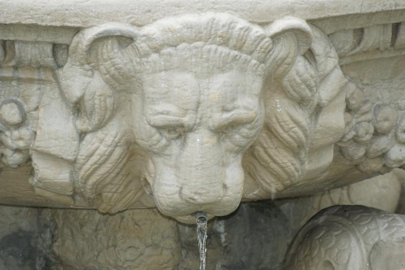 Wasser speien wie auch die vier zumeist verstopften Löwenköpfe