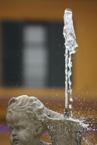 aus dem das Wasser in die mittlere Schale sprudelt. An der zweiten von