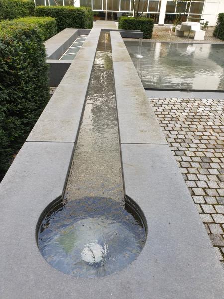 von der es sanft über den Rand abläuft. Bei diesem Brunnen handelt