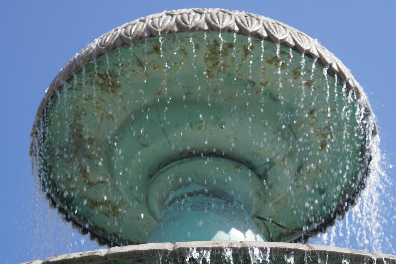 die Wasserfälle. Der Brunnen ist städtisch und ein Baudenkmal