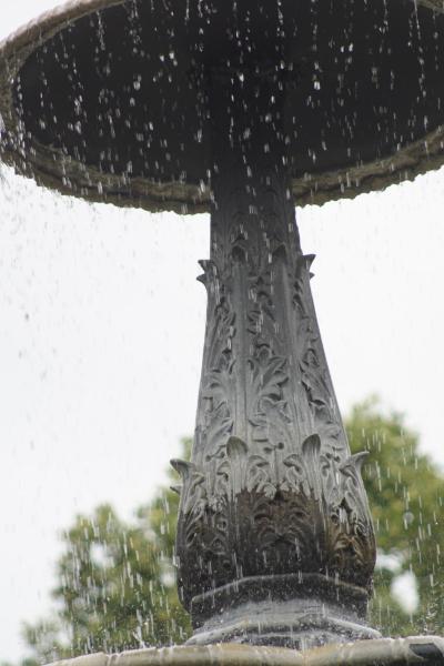 Hoch oben, aus einer Knospe gleich, sprießt das Wasser sanft etwa