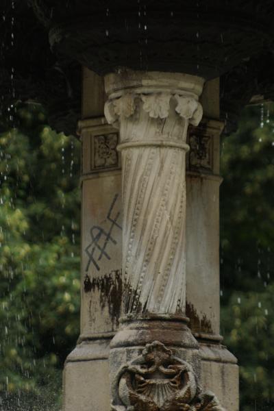 Wasserstrahls steht die zweite, achteckige, dreigeteilte, mit verschiedenen