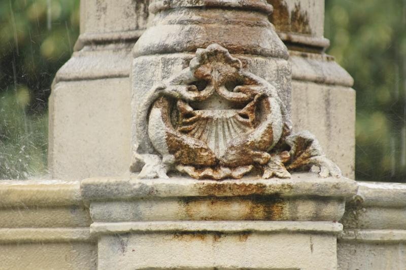 Aus ihren offenen Mündern spritzt das Wasser des großen Beckens