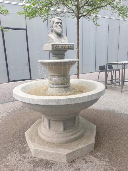 Springbrunnen befindet sich auf dem Gelände der Verwaltung der "Paulaner"
