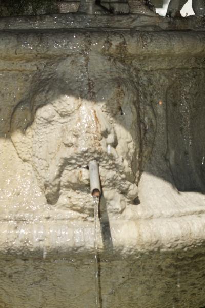 Kunstbrunnen aus steinernem Sockel und einem Becken, der das Fundament