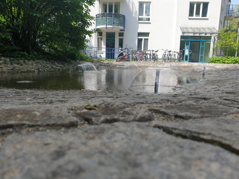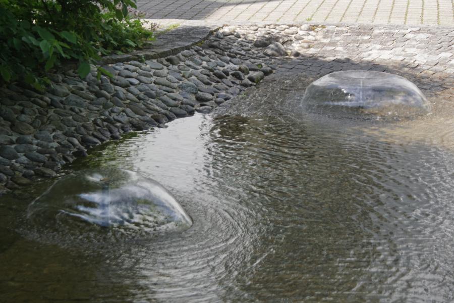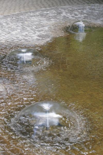 Rohren wird das Wasser zu je einer Halbkugel geformt. Ruhig und leise