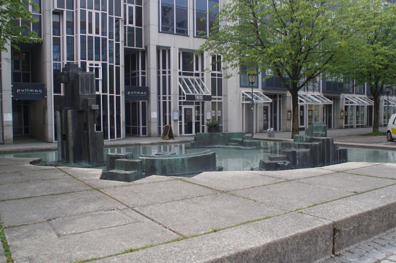 aus Bronze, das Brunnenbecken aus Granit. Die Maße betragen 3,50