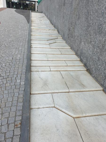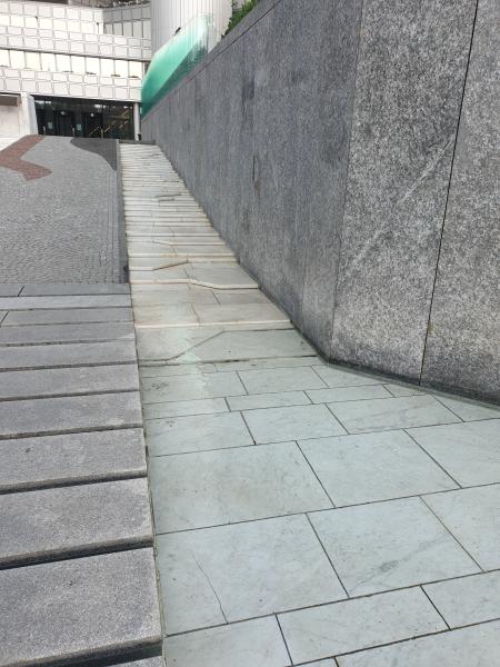 Dies ist eine von drei Brunnenanlagen, die sich vor einem Hochhaus an