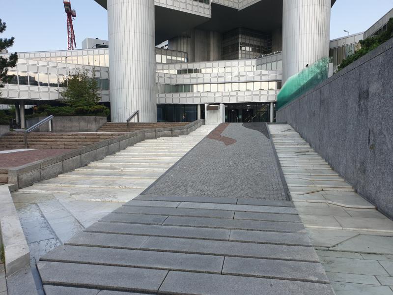 Bild zeigt den Aufgangsbereich zu einem Hochhaus an der Arabellastraße