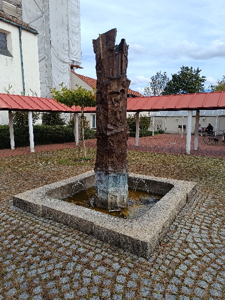 Brunnen mit bronzener Säule befindet sich an der Friedrich - Eckart