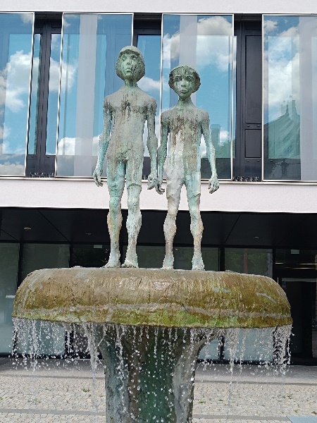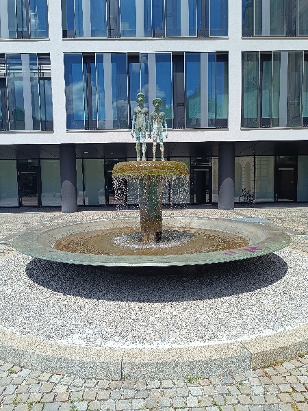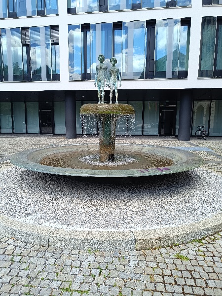 der Brunnen 1978 von Klaus Backmund. Der Bildhauer ließ sich bei