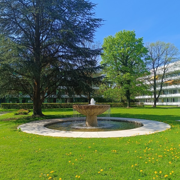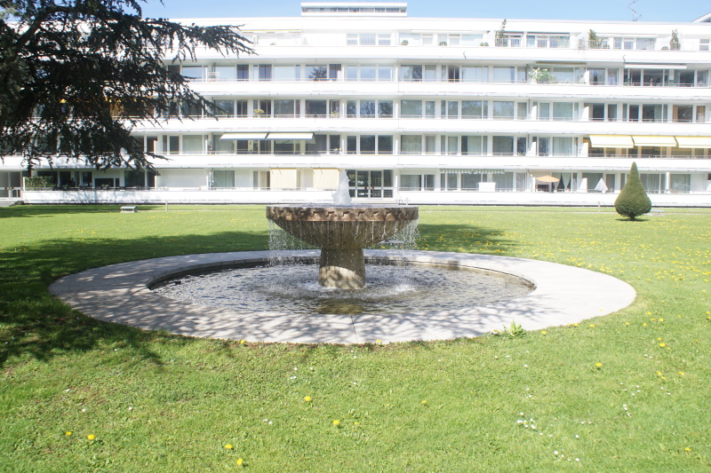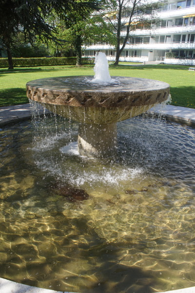 Brunnen befindet sich in der Parkanlage eines Wohnblocks in der Stolzingstraße