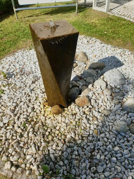 kleine, zierliche Springbrunnen befindet sich vor einem Geschäftshaus