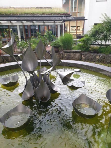 Wasserbecken laden zum Verweilen ein, um zu erfahren, wie die Klangskulpturen