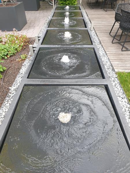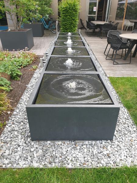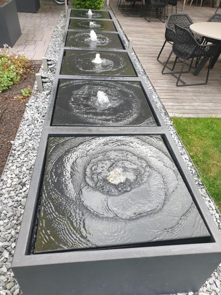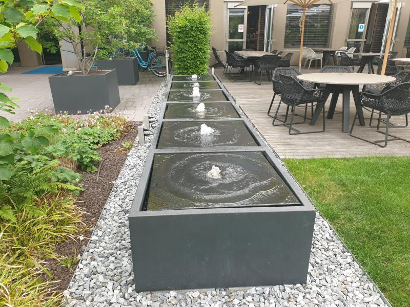 Brunnenanlage befindet sich im Garten des "Motel One" in der