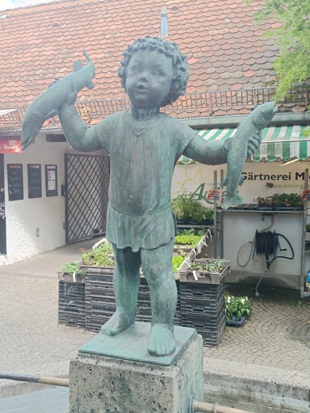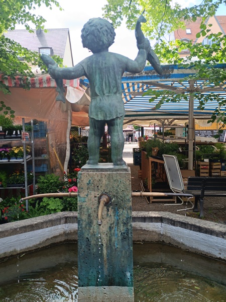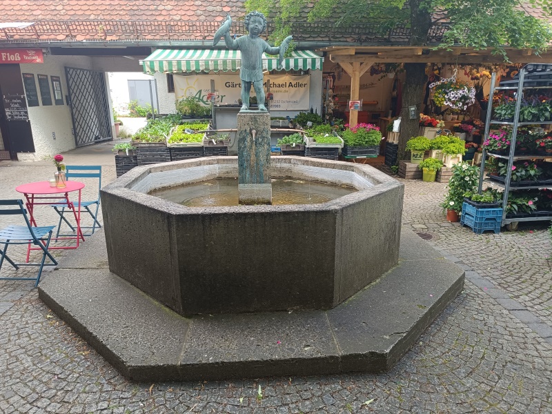 die Stele mit einer bronzenen Kinderfigur, dem so genannten „Brunnenbuberl“.
