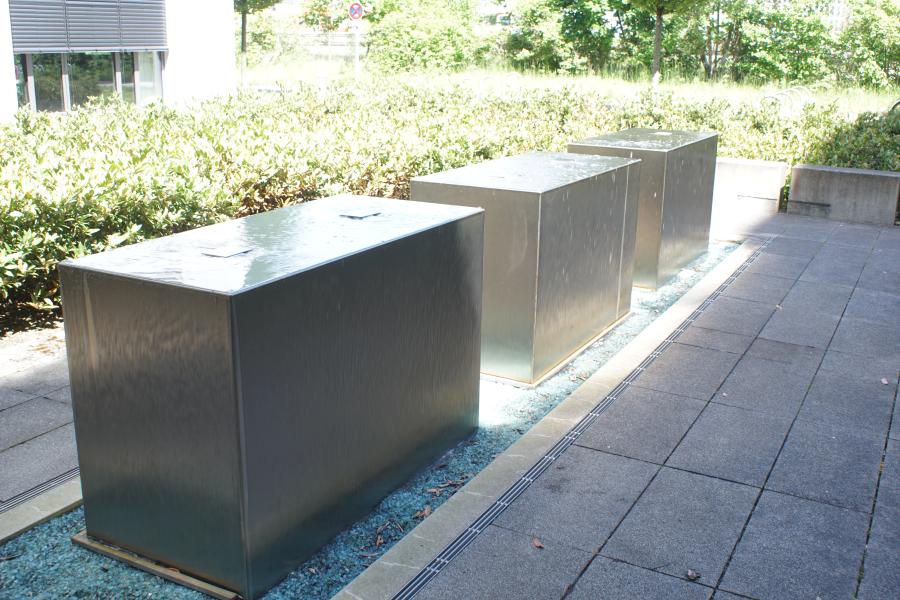 Brunnenanlage befindet sich auf der Rückseite eines Geschäftsgebäudes