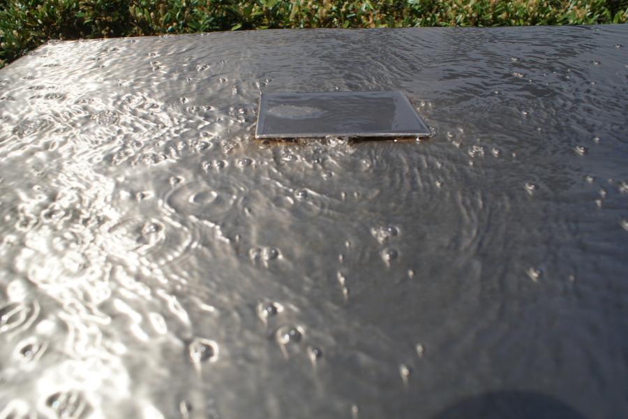 glatt geschnittene Quader läuft sanft das Wasser herab. Hier handelt