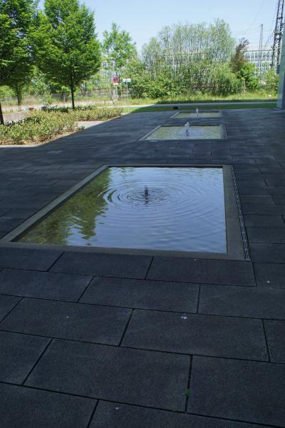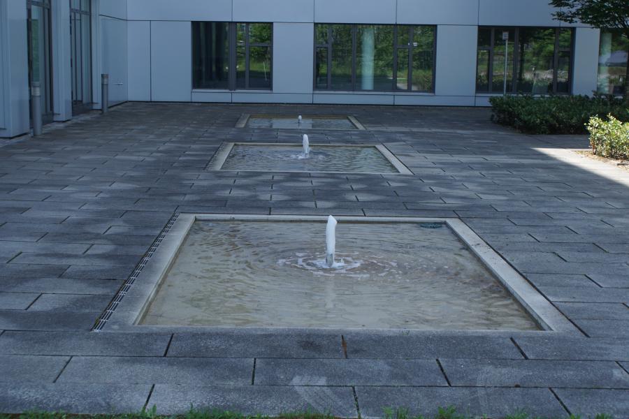 sich um drei Becken mit jeweils einer Fontäne in der Mitte. Hier
