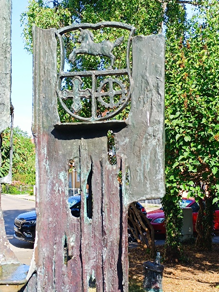 an einen stilisierten Baum. Das Haunstetter Stadtwappen sowie die Figurengruppen