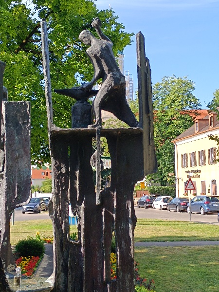 und des Handwerks in Haunstetten erinnern. Der Brunnen erinnert außerdem