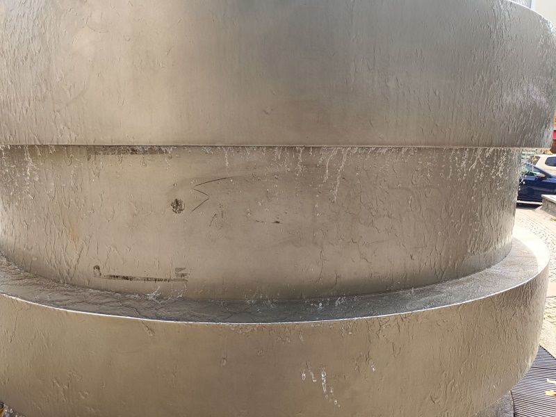 wurde der Brunnen eingeweiht. Die zylindrische Brunnenplastik tarnt den