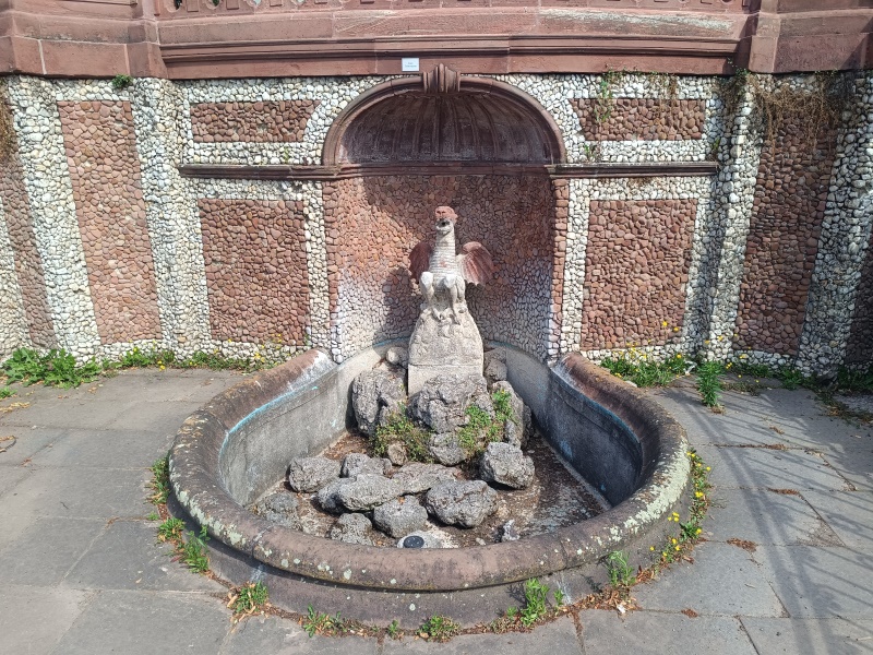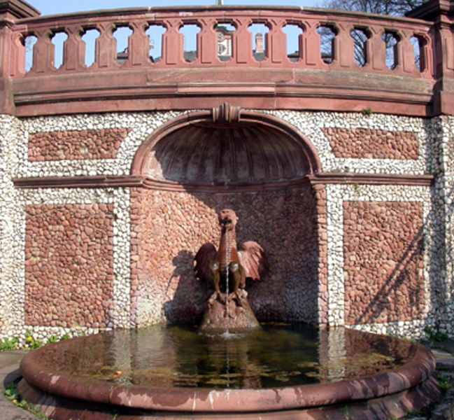 Kulturamt Frankfurt Leider war der schöne "Wasserdrache" wegen Bauarbeiten am oberhalb gelegenen Garten (und dem dazugehörigen Triton - Brunnen) nicht in Betrieb. Darum kann ich hierzu leider keine Laufvideos zeigen. Trotzdem möchte ich hier einige Bilder zeigen, weil ich die Anlage sehr gelungen und schön finde. Auf den beiden unteren Bildern, die ich im Internet gefunden habe, ist der Brunnen in Betrieb. |