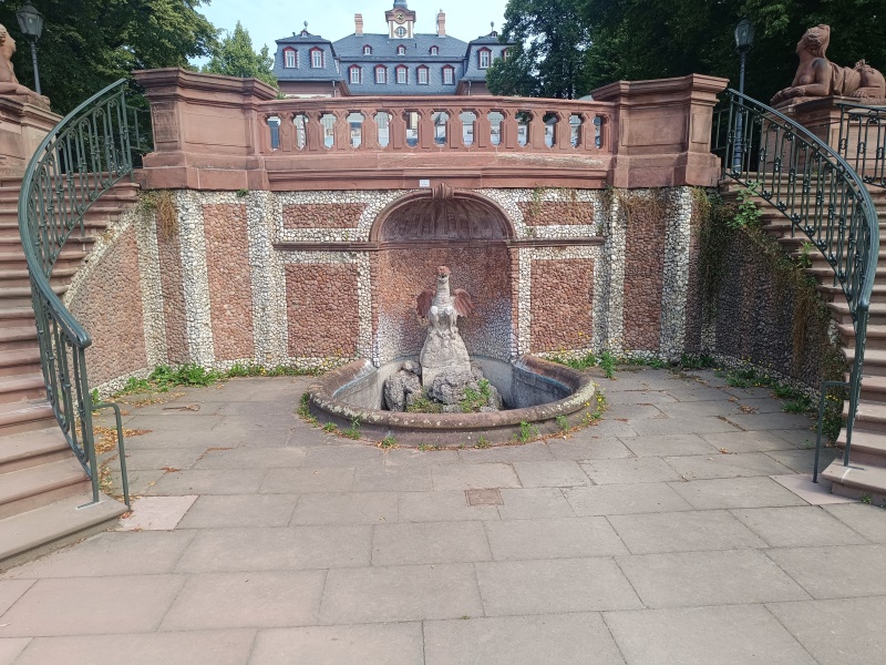 - Brunnen über den Terrassenabsatz Richtung Main und steigt die geschwungene