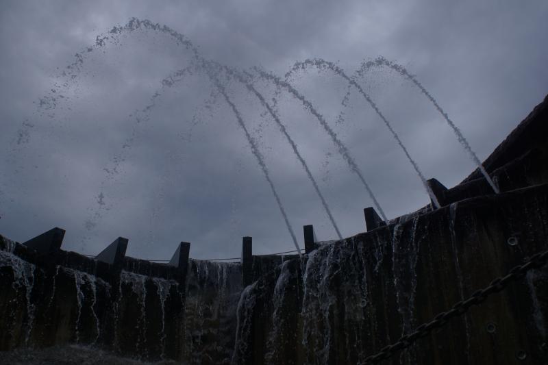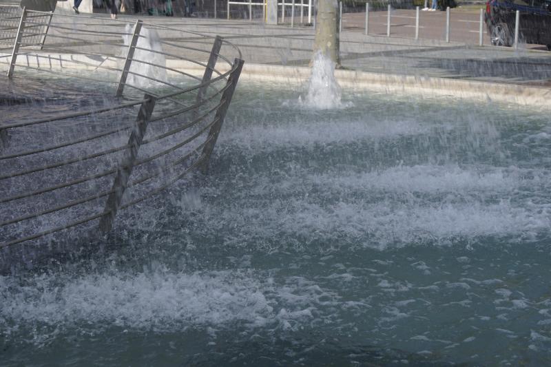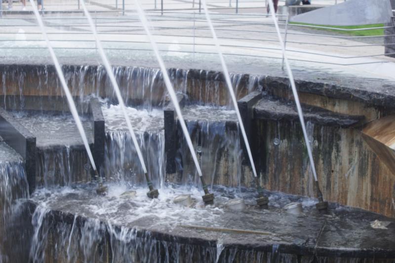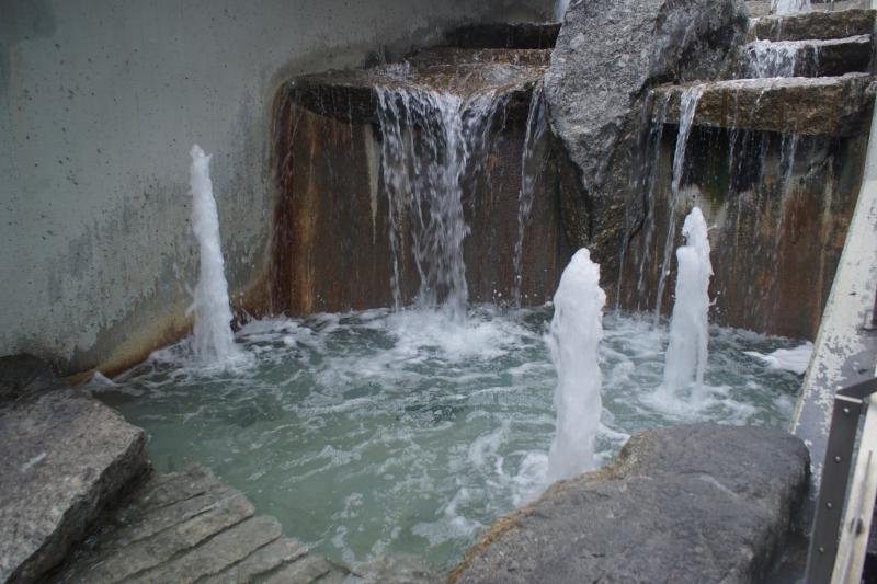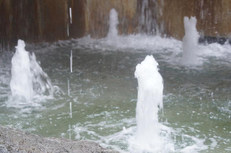 Mehrere Sprudler und Fontänen sind im Brunnen verbaut, der sowohl