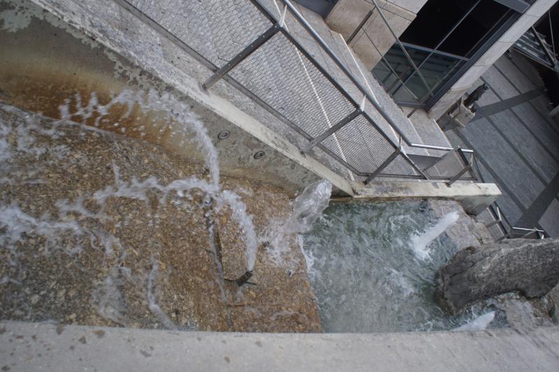 Auf Straßenebene ist ein großes Becken zu finden, in dem sich