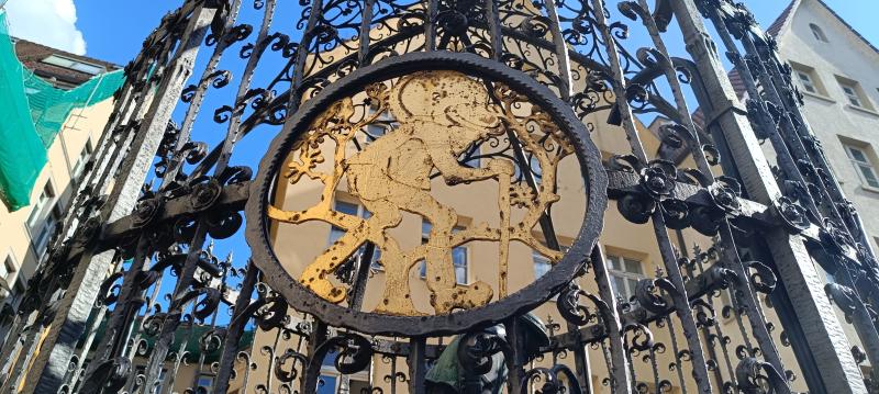 Hans im Glück zeigen. Darüber befindet sich ein schmiedeeiserner