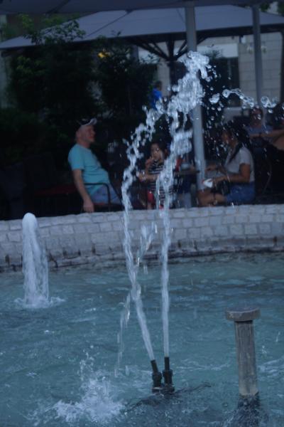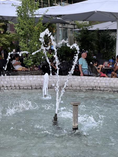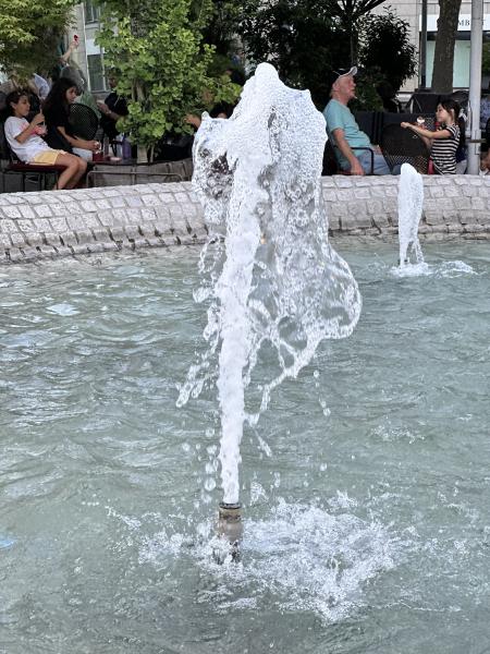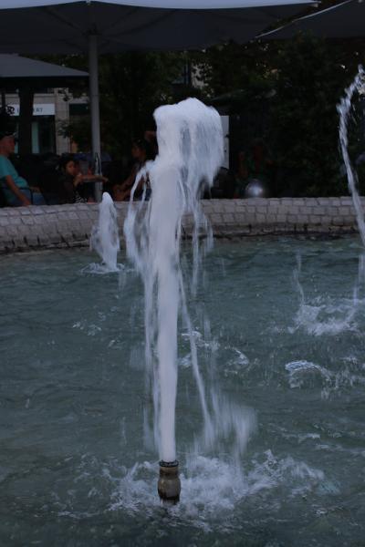 plätschert eine pirouettenförmig aufsteigende Fontäne,