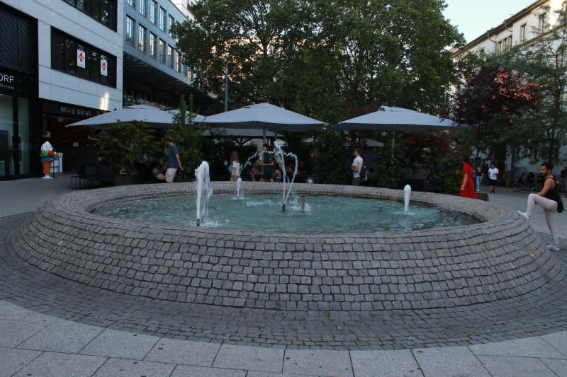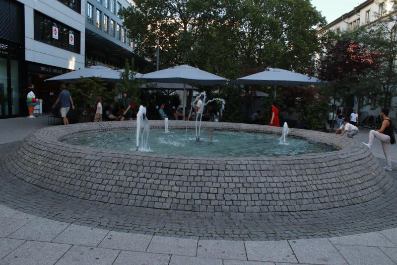 aus dem Pflaster der Fußgängerzone. In der Mitte des Beckens